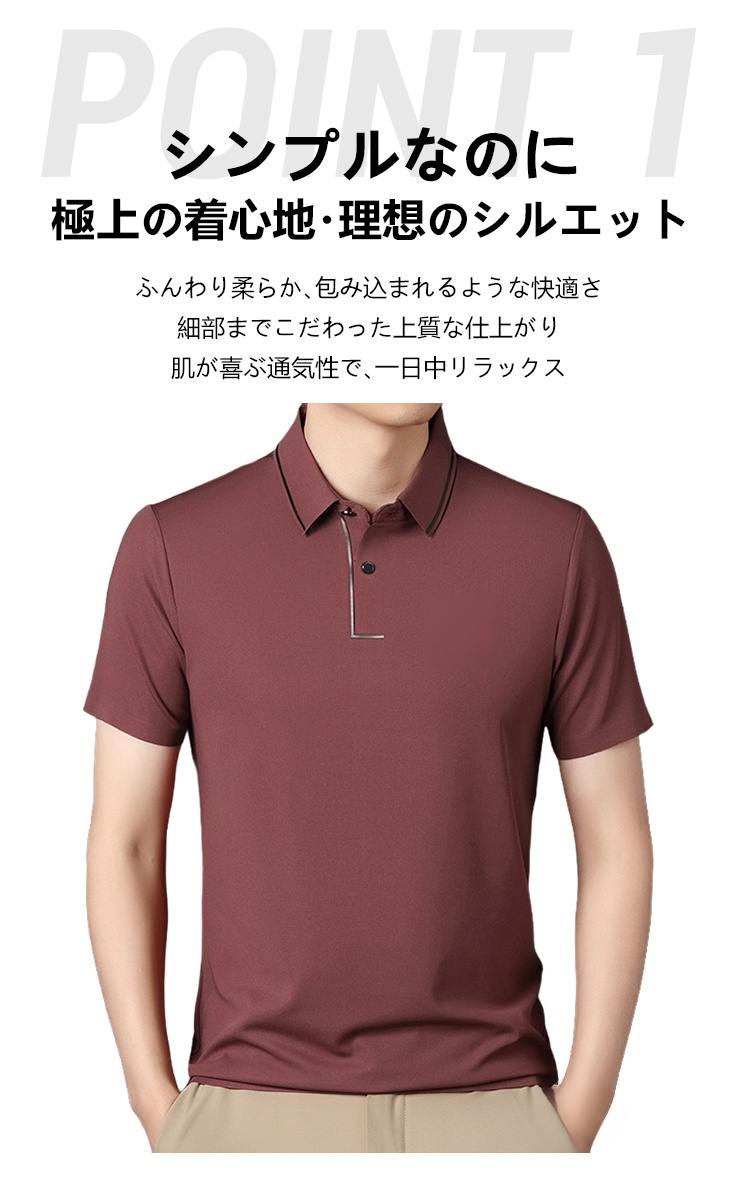 メンズ折り襟シルクポロシャツ、通気性快適冷感メンズ半袖、夏用メンズ半袖