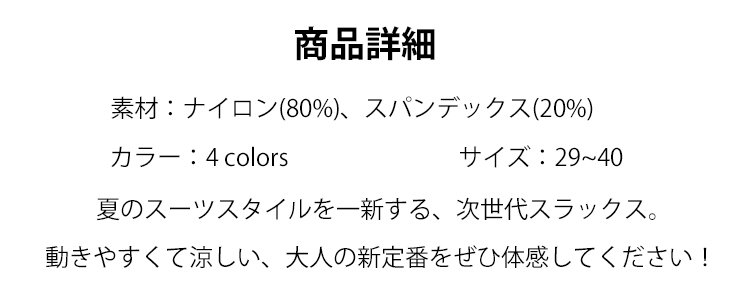 薄手メンズスラックスパンツ 伸縮性抜群 涼感 快適